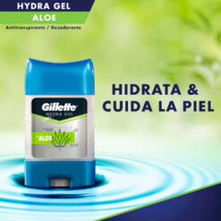 La formula tambien es hidratante y refrescante, contiene Aloe y es dermatologicamente probada, brindando 48h de proteccion invisible contra el Sudor y mal olor. Tiene un aroma super agradable y secado rapido, sin manchas blancas en la applicacion. Usa Gillette Hydra Gel por las mananas, antes de arreglarte para su rutina diaria – Use 3 giros por axila y espere que el producto se seque antes de arreglarte para estar protegido todo el dia. Pruebla el nuevo Gillette Hydra Gel, que te va a sorprender pues es eficaz contra el sudor y mal olor y ademas es suave con tu piel.
