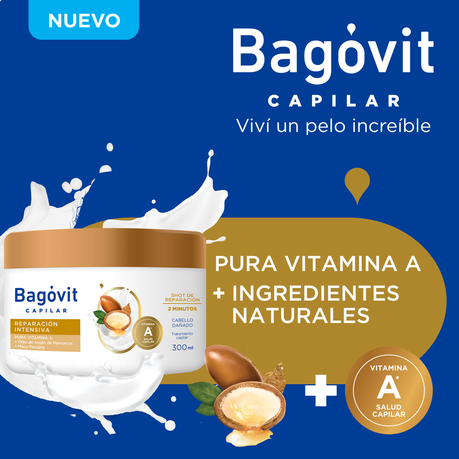 Combina Pura Vitamina A + Óleo de Argán de Marruecos (repara y aporta brillo, pelo saludable por dentro y por fuera) + Maca Peruana (Mantiene el volumen capilar y estimula su crecimiento.)