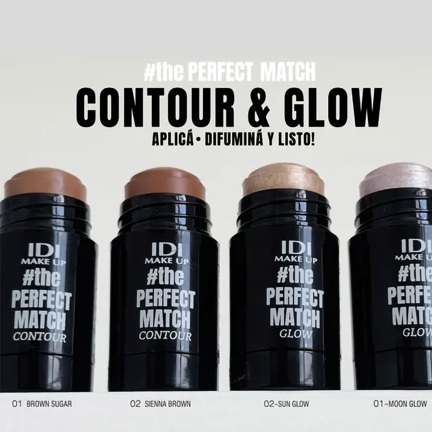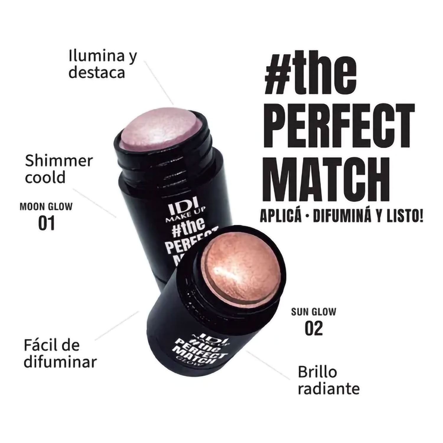 La barra iluminadora IDI Make Up The Perfect Match Glow Stick (5 g), disponible en tonos como Moon Glow y Sun Glow, ofrece un brillo sutil o intenso según tu preferencia. Su fórmula cremosa y ligera se funde de manera impecable con la piel.