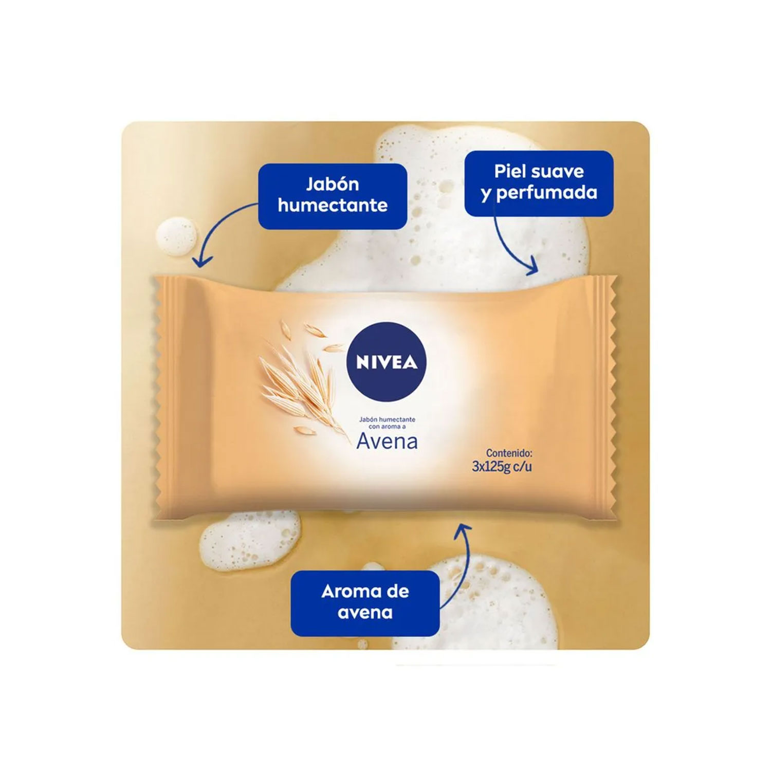 El jabón humectante NIVEA® con aroma a Avena te brinda protección y todo el cuidado de NIVEA, que limpia y refresca tu piel dejándola suave y delicadamente perfumada.
