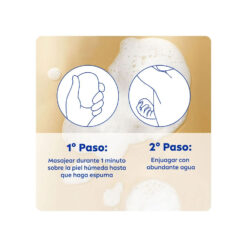 Masajear durante 1 minuto sobre la piel húmeda hasta que haga espuma