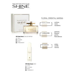 La línea Shine se caracteriza por su fusión de notas florales, marinas y orientales, creando una fragancia envolvente que resalta la feminidad y la fuerza.