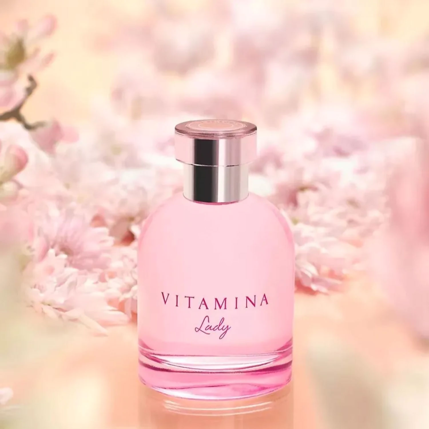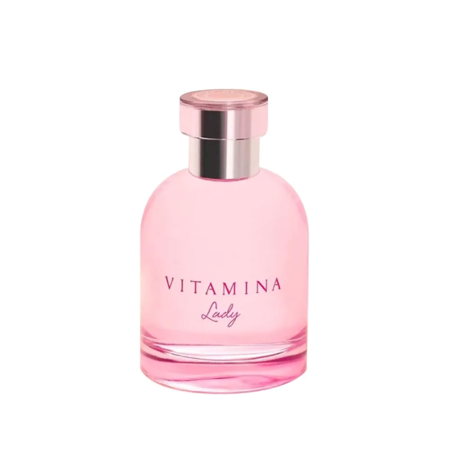 El estuche de Vitamina Lady, color rosa metalizado, destaca por su sutil resplandor moderno y femenino, dando la bienvenida a una fragancia luminosa y sofisticada del mismo tono.