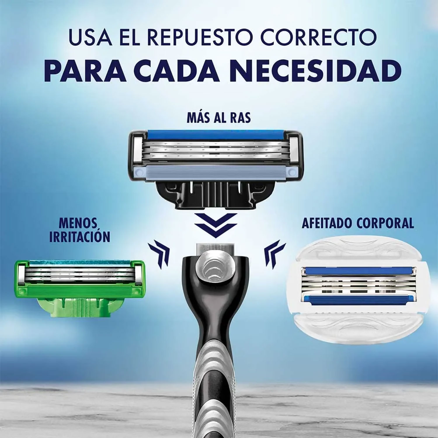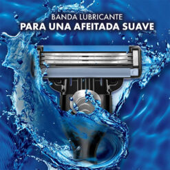 Está diseñada para darte hasta 20 afeitadas por repuesto y su banda lubricante cambia de color cuando la afeitada ya no es óptima, indicándote que ya es tiempo de reemplazar el repuesto por uno nuevo. Su cabeza flexible, que se ajusta al contorno de la cara, y sus 10 microtensores que alisan la piel te proporcionarán una afeitada más al ras. Todos los cartuchos de la familia MACH3 se pueden usar con cualquier mango MACH3.