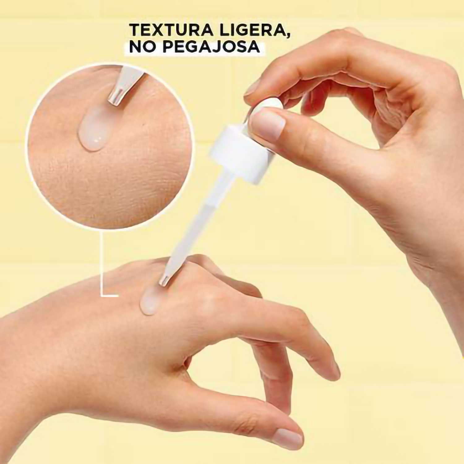 Probá el nuevo Serum de Vitamina C*, Niacinamida y Ácido Salicílico de Garnier que ilumina la piel y unifica el tono en tres dias**. Apto para todo tipo de piel y testeado con dermatólogos. Resultados visibles: piel con menos manchas, hidratada y radiante. Textura ligera, sin sensación grasosa. Aprobado por Cruelty Free International, fórmula vegana y 20% de vidrio reciclado. Sin parabenos ni aceites minerales.