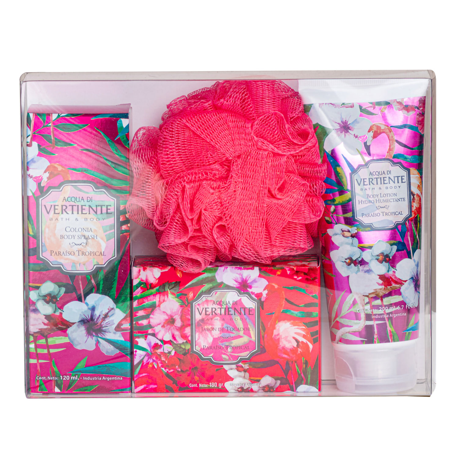 Set Body Lotion + Body Splash + Jabon + Esponja Acqua Di Vertiente Bath And Body Paraiso Tropical X 1 U
