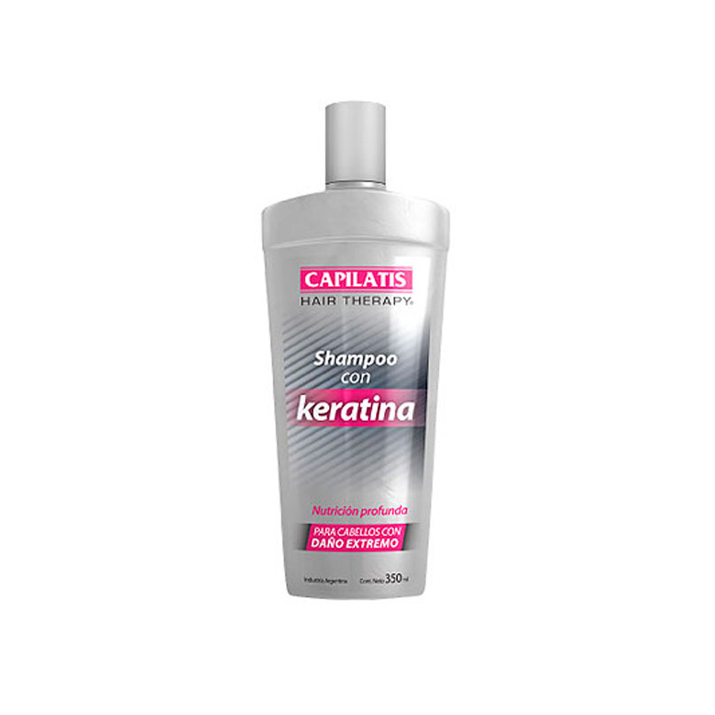 Shampoo Capilatis Keratina Nutrición Prufunda 350ml La Exclusiva línea de tratamiento Capilatis Hair Therapy con Keratina ha sido especialmente diseñada para recuperar la salud de las fibras capilares deterioradas. Normaliza la estructura de los cabellos extremadamente dañados o tratados químicamente y ayuda a mantener el alisado del cabello.
