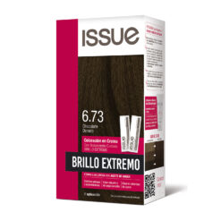 La coloración en crema ISSUE BRILLO EXTREMO cubre 100% las canas, logrando una luminosa intensidad del color y una perfecta uniformidad de raíz a puntas.